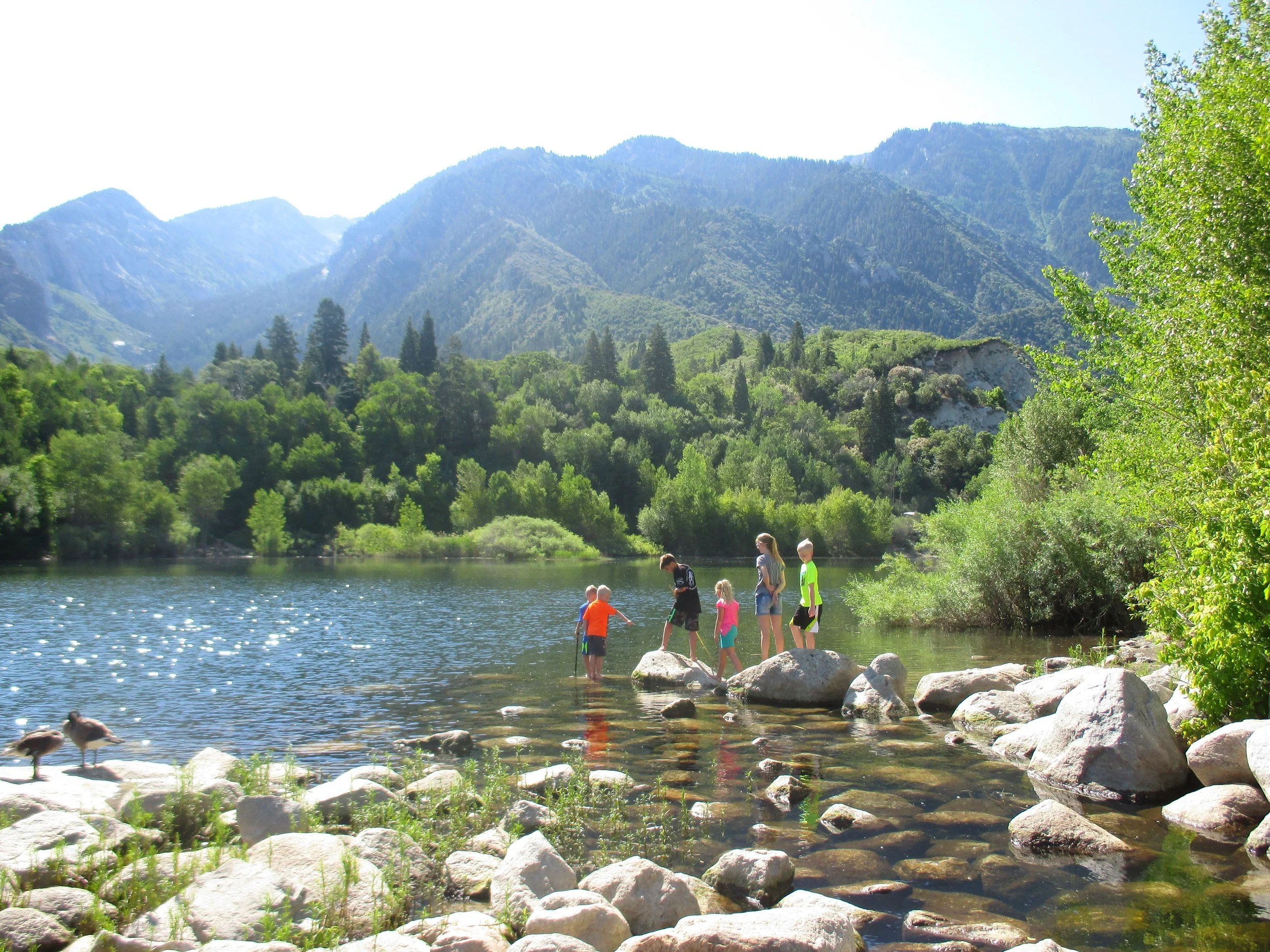 We finally made it to the lake where we sat and took in the view. The kids fed the ducks and tried to catch fish. M went ahead and dropped his phone in the lake. He is awesome. I do love this about UT, I wish it was always like this!